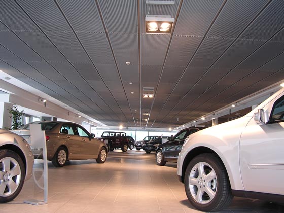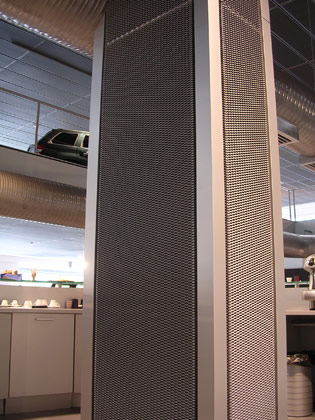 Carshowroom Sondrio Sondrio.  The D-ko Expanded metal type fresco ensures that the building gets a solid and technical look and that is exactly the desired look for the carshowroom.