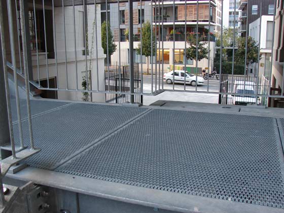 University of Paris Paris.  The robust and durable anti-slip properties of this particular type of d-ko expanded metal, Fresco, makes it perfect for use in staircases. The fact that the material still has a fairly large open surface can be a great advantage in minimizing windforces on the structure.