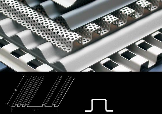 | thickness (t) | height (h) app. | open area app. | kg/m2 app. | min. grid (p) | diameter single relief | waterflow direction | std. width x length | max. width x length |